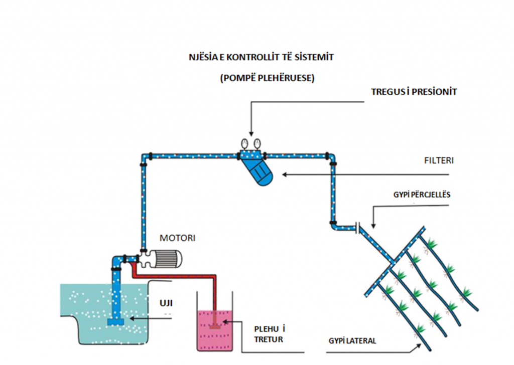 •Përdorimi i kemikaleve apo plehërave me anë të sistem të ujitjes pikë-pikë nuk duhet të shkaktojë bllokime apo korrozione të gypave .