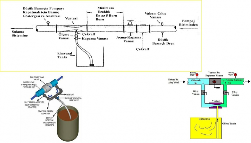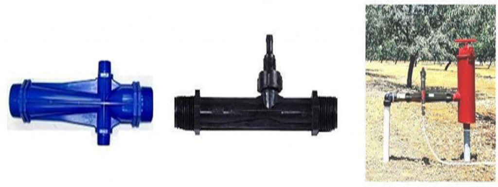 •Një tkurrje në zonën e rrjedhjes rrit shpejtësinë e ujit dhe shkakton ndryshim presioni. Kjo shkakton që tretësira të depërtojë në ujin e ujitjes nga një rezervuar i hapur.