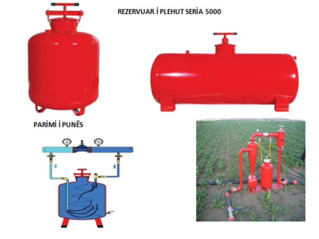 •Në ndërkohë, në gypin kryesor, para pikës së hyrjes në rezervuarin e plehut vendoset një valvul kontrolli. Kështuqë, plehërat e përziera me ujë nuk mund të drejtohen drejt burimit të ujit.
