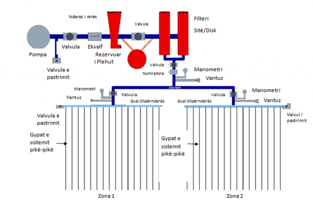 •Dallimi i lartësisë duhet të jetë i njohur (nuk do të kemi nevojë në përdorimin e motopompave nëse dallimet në lartësi do të mund të plotësojnë dallimin e presionit të punës së pikatorëve dhe humbjes së ngarkesës në sistem) .