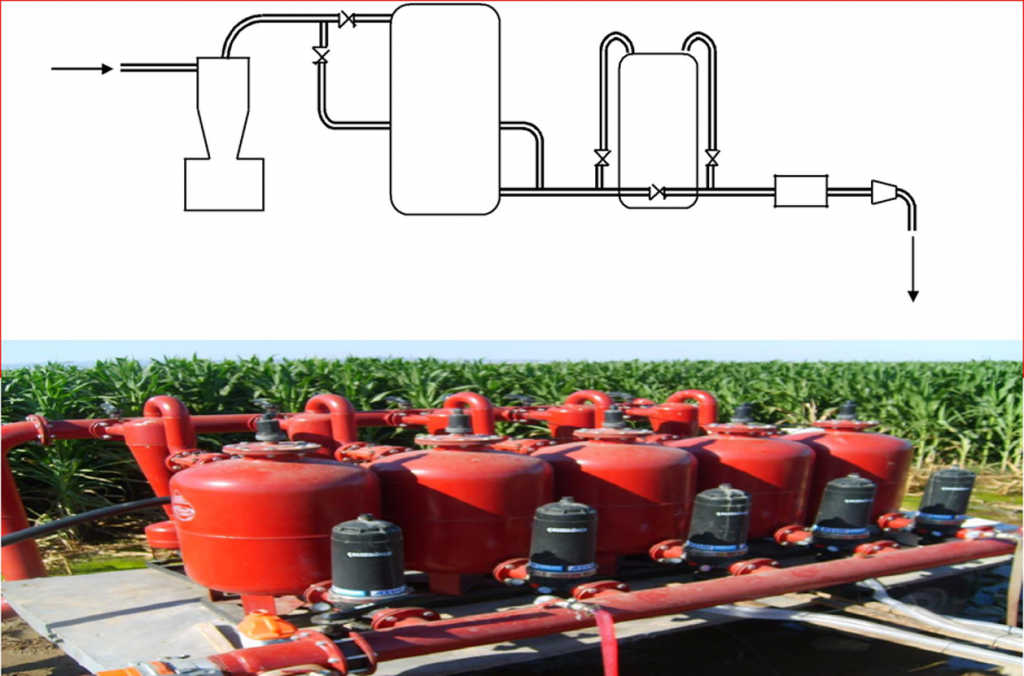 •Në ujitjen me sistem pikë-pikë, uji duhet ti jepet sistemit pasi që të filtrohet mirë. Përndryshe, paraqitet problemi i bllokimit të kanaleve të gypave. Ky operacion kryhet në njësinë e kontrollit.
